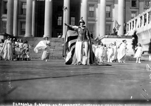columbia December 4, 2012 500 × 351 Tableaux Vivant: History and Practice Actress Hedwig Reicher as “Columbia” with other suffrage pageant participants, 1913. Library of Congress.