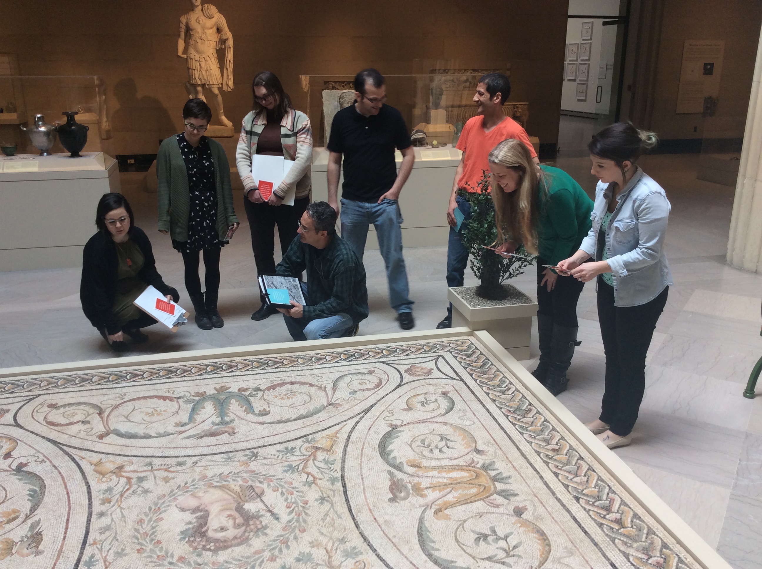 As I mentioned earlier this training was offered to TMA staff and volunteers, in all approximately 300 individuals. In the end we designed a curriculum of 12 contact hours which introduced the concepts surrounding Visual Literacy, spent time on close looking techniques, and gave special emphasis to the four visual languages. Kate and I knew that 12 hours was a significant commitment for people to give over during the work week, so we also developed a variety of workshop formats to adjust to people’s schedules accordingly. Initially each of these sessions was facilitated by full-time TMA education staff but gradually transitioned two of our more experienced docents into facilitators. These docents, who were both former docent board presidents, had been working closely with staff on visual literacy programming since 2010.
