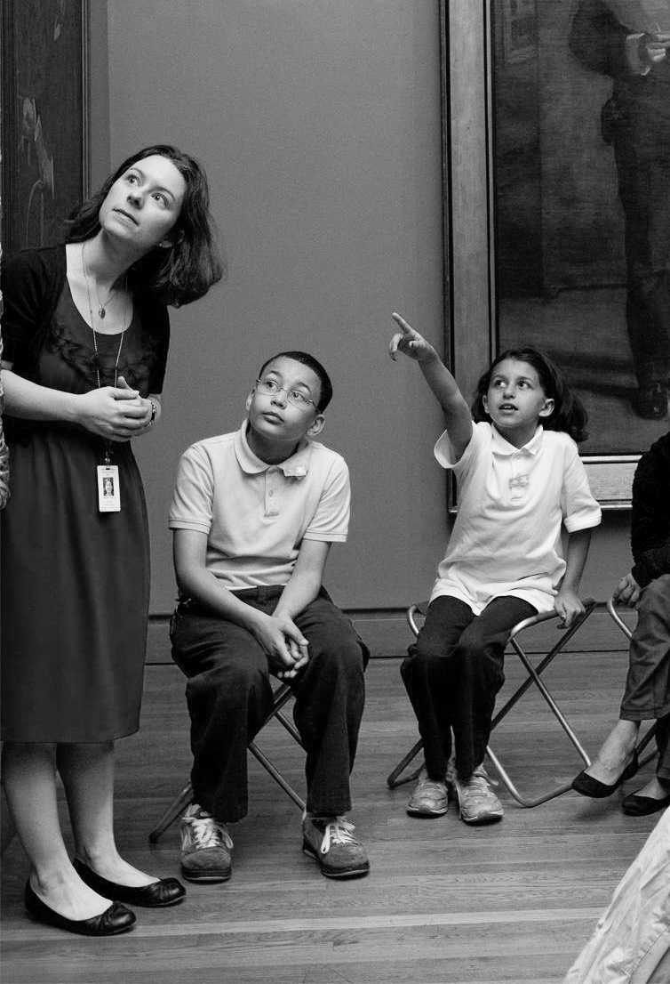 Featured Image: A mediator (educator) at the Montreal Museum of Fine Arts working with children. Photo credit © Mikaël Theimer (MKL)